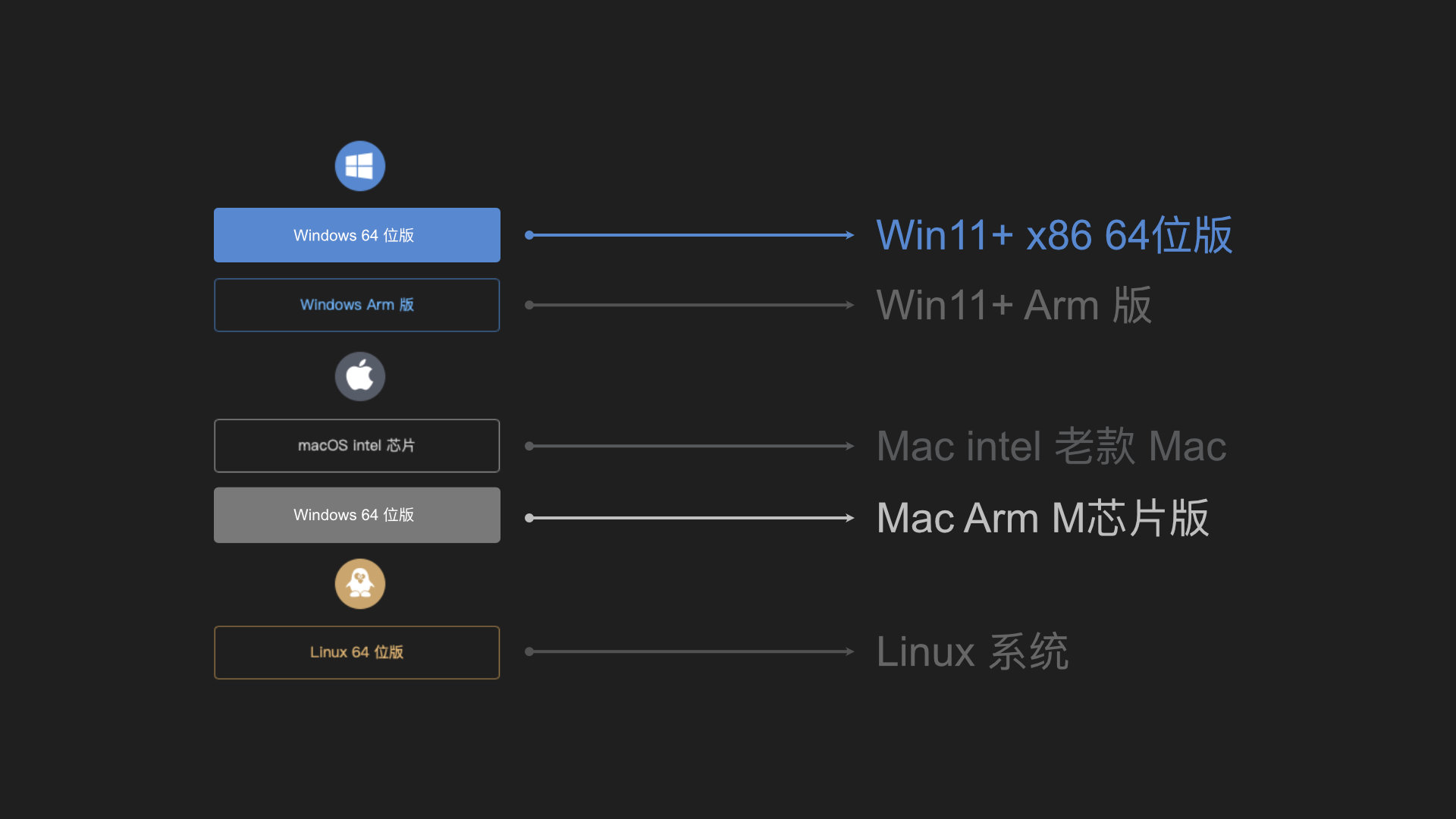 Windows:微软操作系统最低要求 Win 11(Win10 操作系统版本 Blender 已经停止开发与维护),如果操作系统过低,请先升级系统,完成后,选择 Windows 版本下载